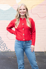 Kohana Crewneck Cardigan, Garnet | RD Style
