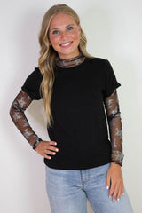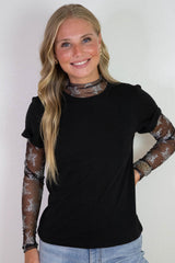 Brighten your look with the Lady Lux Two Tone Layering Top in Thunderstorm Combo. This playful piece features eye-catching floral details, a stylish mock neck, and long sleeves for a fun, layered vibe. Its two-toned design adds a fresh twist, perfect for mixing and matching with your favorite outfits!