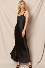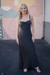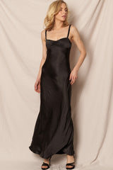 Lana Sweetheart Neck Satin Maxi Dress, Black