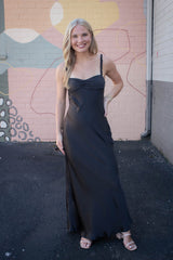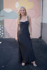 Step out in style with the Lana Sweetheart Neck Satin Maxi Dress. This playful black beauty features a flattering sweetheart neckline and an elegant open back, perfect for turning heads. The silky satin fabric flows effortlessly to maxi length, while elastic straps and a side zipper offer a comfortable and secure fit. Sleeveless and sophisticated, this dress blends charm and ease for your next special occasion or night out!
