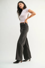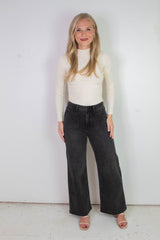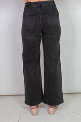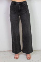 Get ready to rock laid-back vibes with the Leah Patch Pocket Wide Leg Jeans in washed black. These jeans feature fun mini patch pockets and a breezy wide-leg cut that moves with you all day long. The washed denim adds character and a soft, worn-in feel that makes every step feel easy and cool. Perfect for those who love comfort with a dash of playful style!
