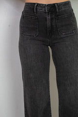 Leah Patch Pocket Wide Leg Jeans, Washed Black