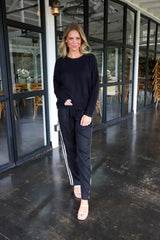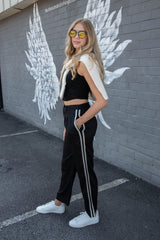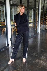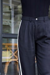 Leighton Side Stripe Trousers, Black Cream