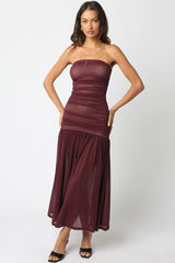 Lenora Strapless Fitted Maxi Dress, Burgundy