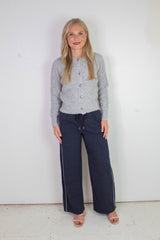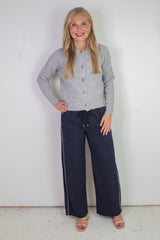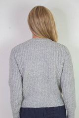 Add a sparkling twist to your cozy essentials with the Letrice Silver Button Cardigan. Featuring charming silver buttons, a classic button-down front, and a comfy crew neckline, this long-sleeve cardigan in a stylish silver grey melange brings warmth and playful sophistication to any outfit. Perfect for layering and elevating your everyday look with a subtle shine!