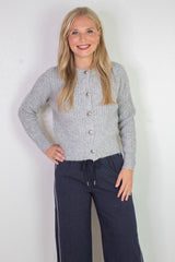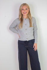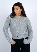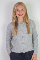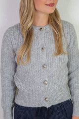 Letrice Silver Button Cardigan, Silver Grey Melange | RD Style