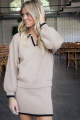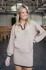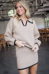 Lianna Knit Sweater Mini Skirt, Light Mocha
