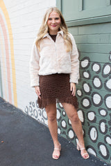 Stay cozy and chic in the Libby Faux Fur Zip Up Jacket from Sadie & Sage. This cream-colored jacket features a plush faux fur finish with a playful collar and easy zip-up closure. Side pockets add a handy touch, perfect for keeping your hands warm or stashing little essentials while you strut your stuff in style!