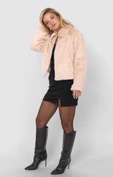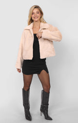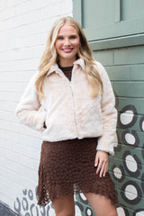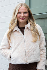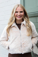 Libby Faux Fur Zip Up Jacket, Cream | Sadie & Sage