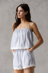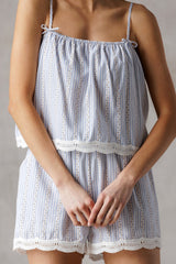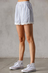 Sofia Floral Pinstripe Lace Hem Shorts, Blue/White/Orange