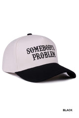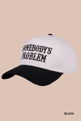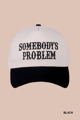 This Somebody's Problem Two Tone Canvas Cotton Cap in Black combines casual charm with a splash of personality. Featuring an adjustable strap for a perfect fit, embroidered lettering that adds a cool edge, and a stylish two-tone design, it’s the ideal cap to top off your laid-back look with a playful twist!