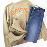Spice up your wardrobe with this oversized Spice Girl graphic sweatshirt. With long sleeves and a crew neckline, stay warm and stylish in any season. Perfect for casual wear or dressing up, this sweatshirt will add a touch of fun and quirk to your outfit!