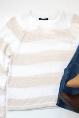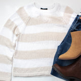 Stella Textured Raglan Sweater, White/Light Oak Stripe | Sanctuary
