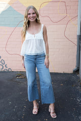 Strut your stuff in these Suki Ankle Wide Leg Jeans! The indigo hue pairs perfectly with the playful frayed hem, giving you that "I woke up this fabulous" vibe. These wide-legged wonders from Silver Jeans Co are your ticket to turning sidewalks into runways and errands into fashion statements!