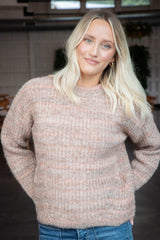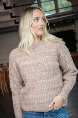 Syla Crew Neck Pullover Sweater, Soft Brown | RD Style