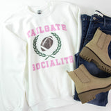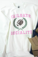 Get ready to be the life of the party with the Tailgate Socialite Sweatshirt! This graphic sweatshirt features an oversized, cozy fit, perfect for those chilly nights. With a crew neckline and long sleeves, you'll stay warm and stylish. So go ahead, have some fun and show off your playful side with this must-have sweatshirt!