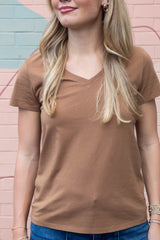 Tatum Cotton Jersey V-Neck Tee, Bronze Brown