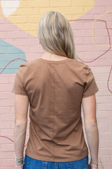 Slip into cozy comfort with the Tatum Cotton Jersey V-Neck Tee in Bronze Brown. Its soft cotton jersey fabric pairs perfectly with a flattering V-neck and breezy short sleeves, making it your go-to for effortless style and all-day ease. Whether you’re lounging or out and about, this playful tee adds a sweet touch of chocolatey charm to your wardrobe!