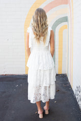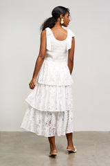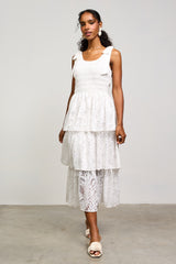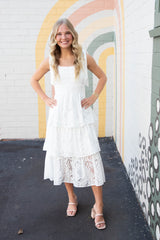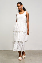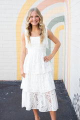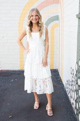 Teagan Burnout Woven Tiered Midi Dress, Off White