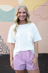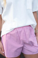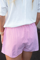 Get ready to add some fun to your wardrobe with our Thalia Pinstripe Shorts! The pinstriped design and embroidered bow detail will have you looking stylish and playful, while the elastic waist ensures comfort all day long. Don't miss out on these quirky and trendy shorts in a vibrant red color!
