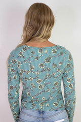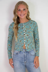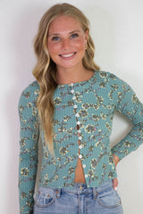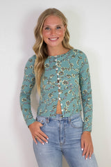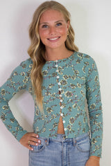 Embrace a playful vibe with the Tilly Printed Cardigan in Mineral Blue Combo. Featuring a charming floral print, button-down front, and a flattering boat neck, this textured cardigan adds a touch of whimsy to any outfit. Long sleeves keep you cozy while the unique design keeps your style fresh and fun. Perfect for layering on breezy days or brightening up your look with a splash of floral flair!