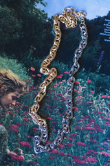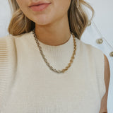 This exquisite Toby Two Toned Link Necklace is the perfect choice for fashion jewelry. Crafted in both gold and silver, its delicate link chain is secured with a claw clasp closure. Elevate any look with this stylish statement piece.