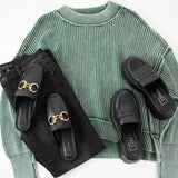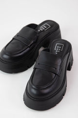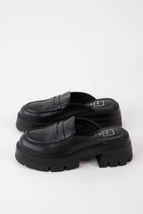 Step into style with the Trixie Loafer Mule. Made of leather, this shoe features a chunky lug sole for added height and comfort. With its slip on design, you'll be ready to hit the town in no time!