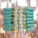 Rock this TS friendship bracelet and show off your love for Taylor Swift! The stretch bracelet is made with intricate clay beads and adds a pop of turquoise to any outfit. Plus, it's the perfect size with a 7" circumference. Get ready to embrace your inner Swiftie in style!
