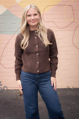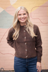 Add a touch of cozy charm to your wardrobe with the Usha Raglan Sleeve Cardigan in Brown Melange. Featuring playful raglan long sleeves and a classic crew neckline, this cardigan offers comfort with a twist. The button-down front lets you style it your way—layer it up or wear it open for an easygoing vibe. Perfect for cozy days with a dash of fun!
