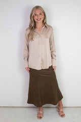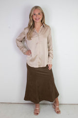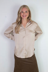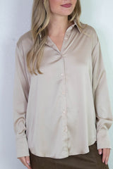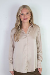 Valentina Silky Button Down Top, Champagne