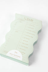 Get things done in style with the Wavy Daily Notepad in a calming sage green color. This quirky notepad features a wavy design, adding a touch of fun to your daily goals and checklist. Plus, it's a great reminder to practice self-love while being productive!