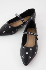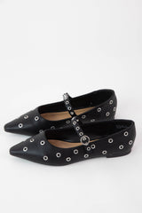 Unleash your wise and playful side with our Snip Toe Mary Jane Flats in sleek black faux leather. These flats feature unique grommet details, a snip pointed toe, and an adjustable strap for a perfect fit. A must-have for those who don't take themselves too seriously, but still want a touch of sophistication!