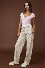 Get ready to blend style and function with the Wrenley Camouflage Long Utility Pant. Featuring a high-rise fit and straight legs, these pants combine comfy elastic waist with a secure zipper and button closure. Side pockets add handy storage, while the classic camo print and utility style bring a bold, adventurous vibe to your everyday look. Perfect for those who love to keep it cool and practical!