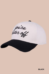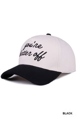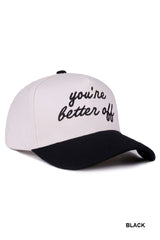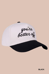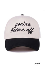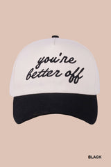 You're Better Off Two Tone Canvas Cotton Cap, Black