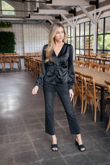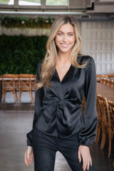 This twist front top is all mine! Featuring a flattering v-neck and side zipper closure, it's the perfect combination of style and convenience. The long sleeves add a touch of sophistication, while the twist front adds a unique and playful twist to your wardrobe. Don't wait, make it yours today!