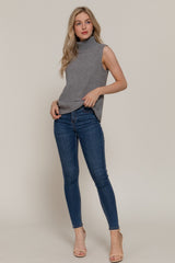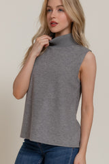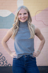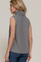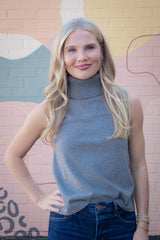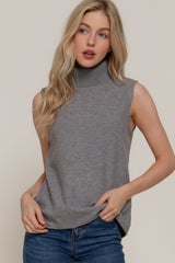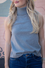 Zoe Sleeveless Turtle Neck Top, Heather Grey