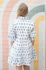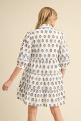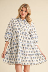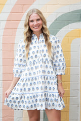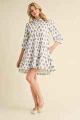Twirl into style with the Lennox Babydoll Dress! This off-white charmer features a playful block floral print with eye-catching striped contrast pintuck details. The tiered, flowy silhouette is topped with a sweet rounded collar and comfy elbow sleeves. Just button up and you're ready for sunshine adventures!