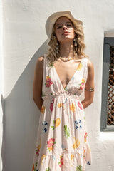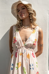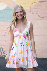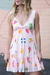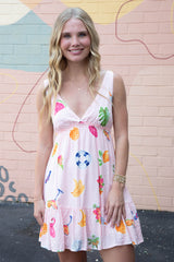 Marceline Summer Printed Surplice Neck Dress, Light Pink