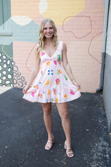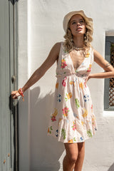Be the belle of the summer in Marceline's flirty printed dress! With a playful surplice neckline, ruffled hem, and elastic waist, this mini length dress will keep you cool and stylish. And don't forget the open back for an extra dose of fun!