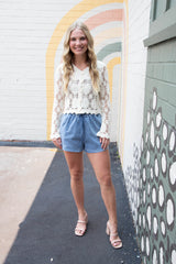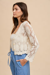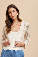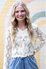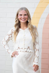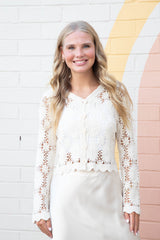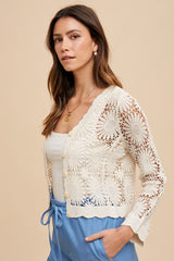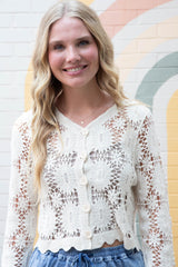 Make a statement with the Mona Floral Crochet Cardigan! Featuring an intricate crochet pattern and floral design, this cozy cardigan is sure to be your go-to sweater. This is the perfect throw-on layer to go with any ensemble!