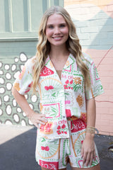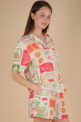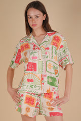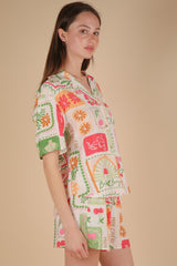 Nia Vacation Print Shirt, Ivory Mix