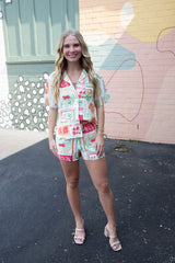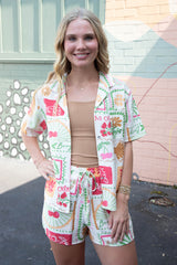 Escape to paradise with our Nia Vacation Print Shirt in dreamy Ivory Mix! This playful button-down features short sleeves perfect for sunny adventures, a classic collar for just the right amount of polish, and a handy chest pocket for your sunglasses or lip balm. Your vacation wardrobe's new best friend!