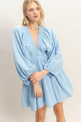 The Adeline Mini Dress is your go-to piece for effortless style with a modern twist. This charming dress features a flattering deep V-neckline that adds instant sophistication, while the romantic bishop sleeves bring a whimsical touch to your everyday look. The mini length keeps things fun and flirty, making it perfect for everything from casual outings to date night. Slip it on and let your personality shine through.