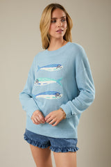 Coastal Fish Graphic Sweater, Light Blue