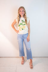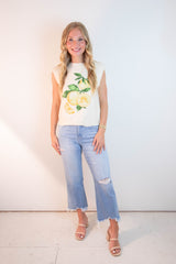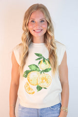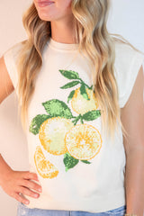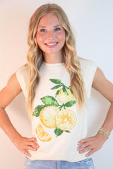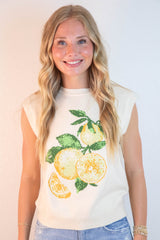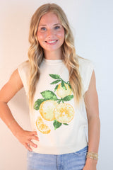 Florence Sleeveless Lemon Print Sweater, Ivory-Lemon
