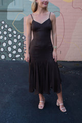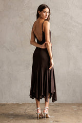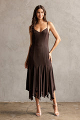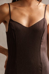 Phoebe Shimmering Asymmetric Hem Dress, Brown