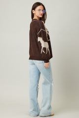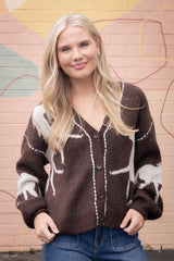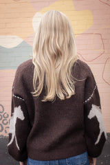 Rebekah Contrast Stitch Horse Cardigan, Brown