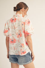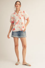 Elevate your wardrobe with the Vanny Floral Top in Red, a charming piece that celebrates feminine details. This top showcases a beautiful floral print paired with voluminous puff sleeves and elegant shirring at the bodice for a flattering silhouette. Made from a soft cotton-polyester blend with a smooth polyester lining, it offers both comfort and durability. The fabric breathes beautifully while maintaining its shape throughout the day. Hand wash cold and lay flat to dry to preserve the quality and vibrancy of your new favorite top.
