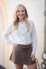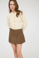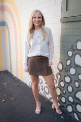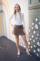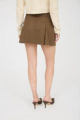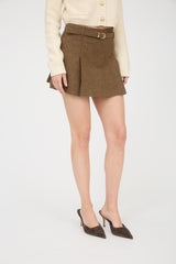 This playful mini skirt brings a fun twist with its box pleated design and adjustable belt, letting you customize your fit. The brown hue adds warmth and versatility to your outfit, while the side zipper ensures easy wear. Perfect for twirling through your day with style and comfort!