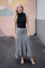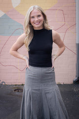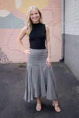 Bring fun and flair to your wardrobe with the Minerva Checkered Maxi Skirt in Black Taupe. Featuring a playful checkered pattern and a maxi length that sways with every step, it’s perfect for any occasion. The ruffled hem adds a flirty touch, while the elastic waist ensures all-day comfort. Whether paired with a simple tee or dressed up, this skirt is ready to turn heads and keep you stylishly at ease!